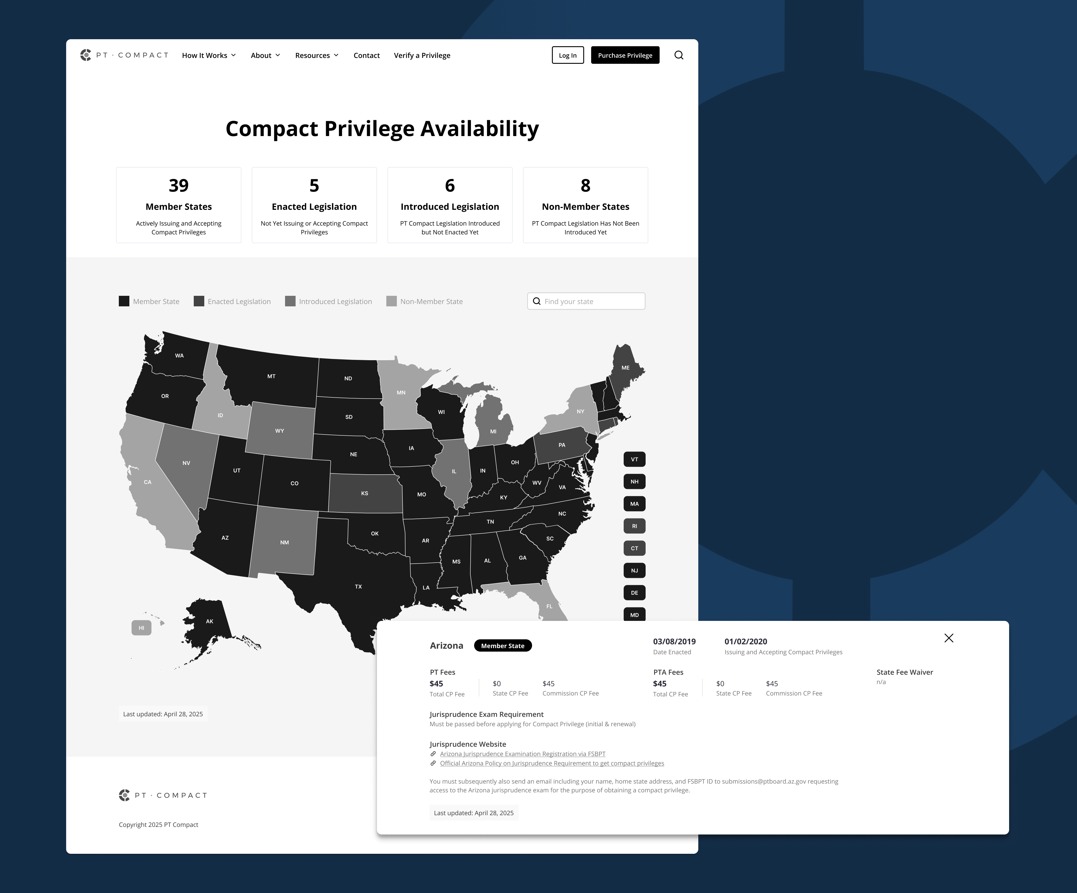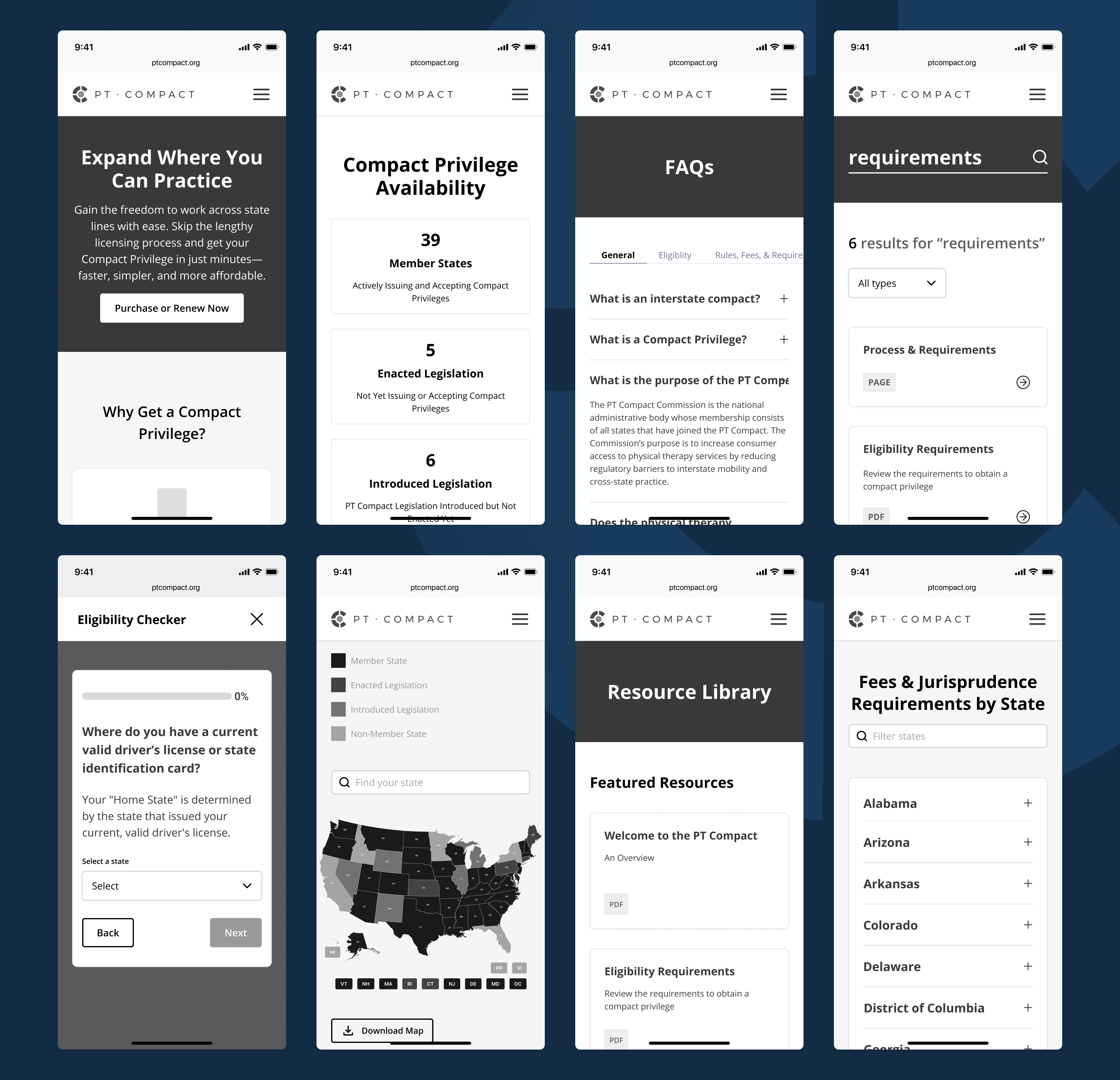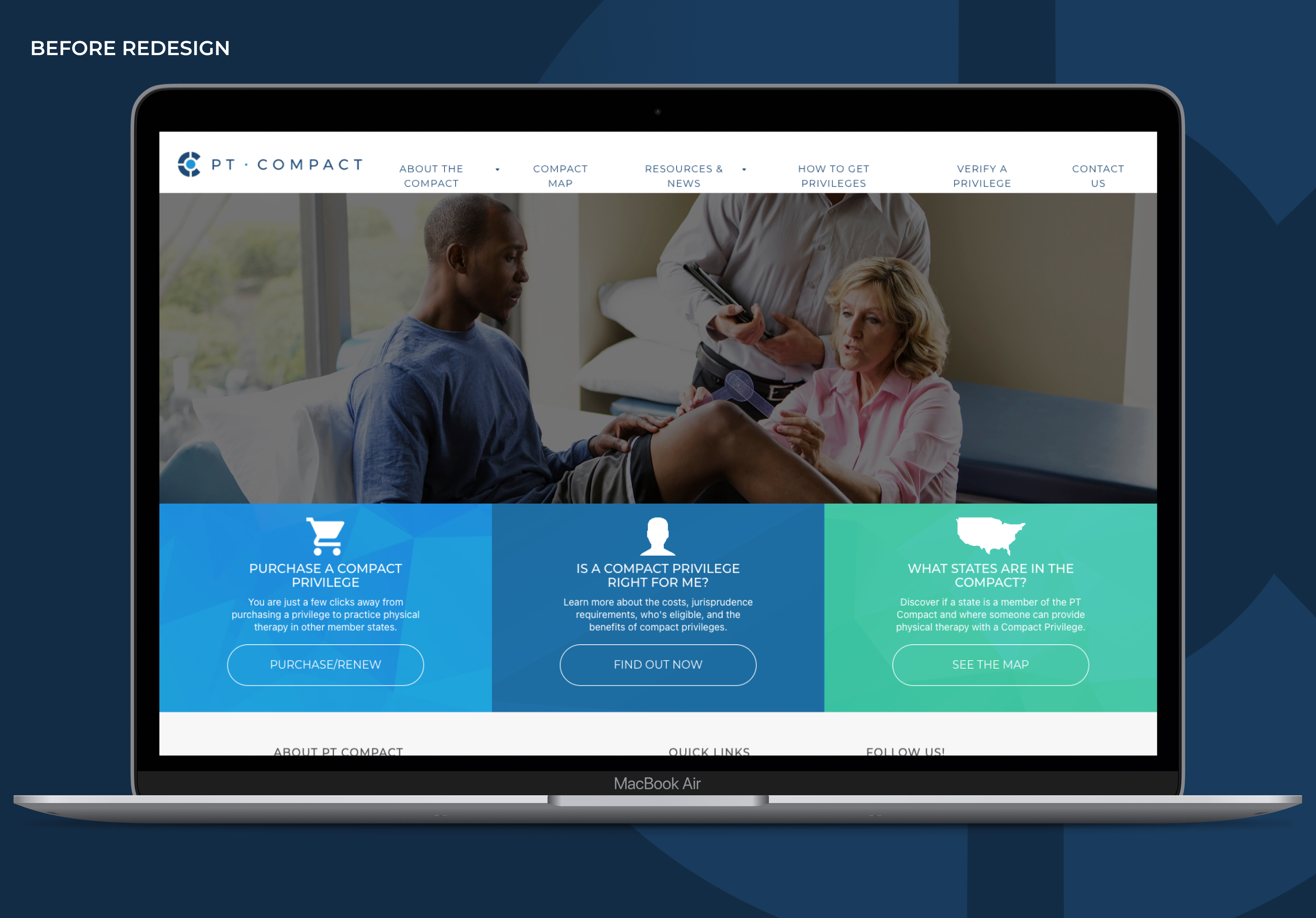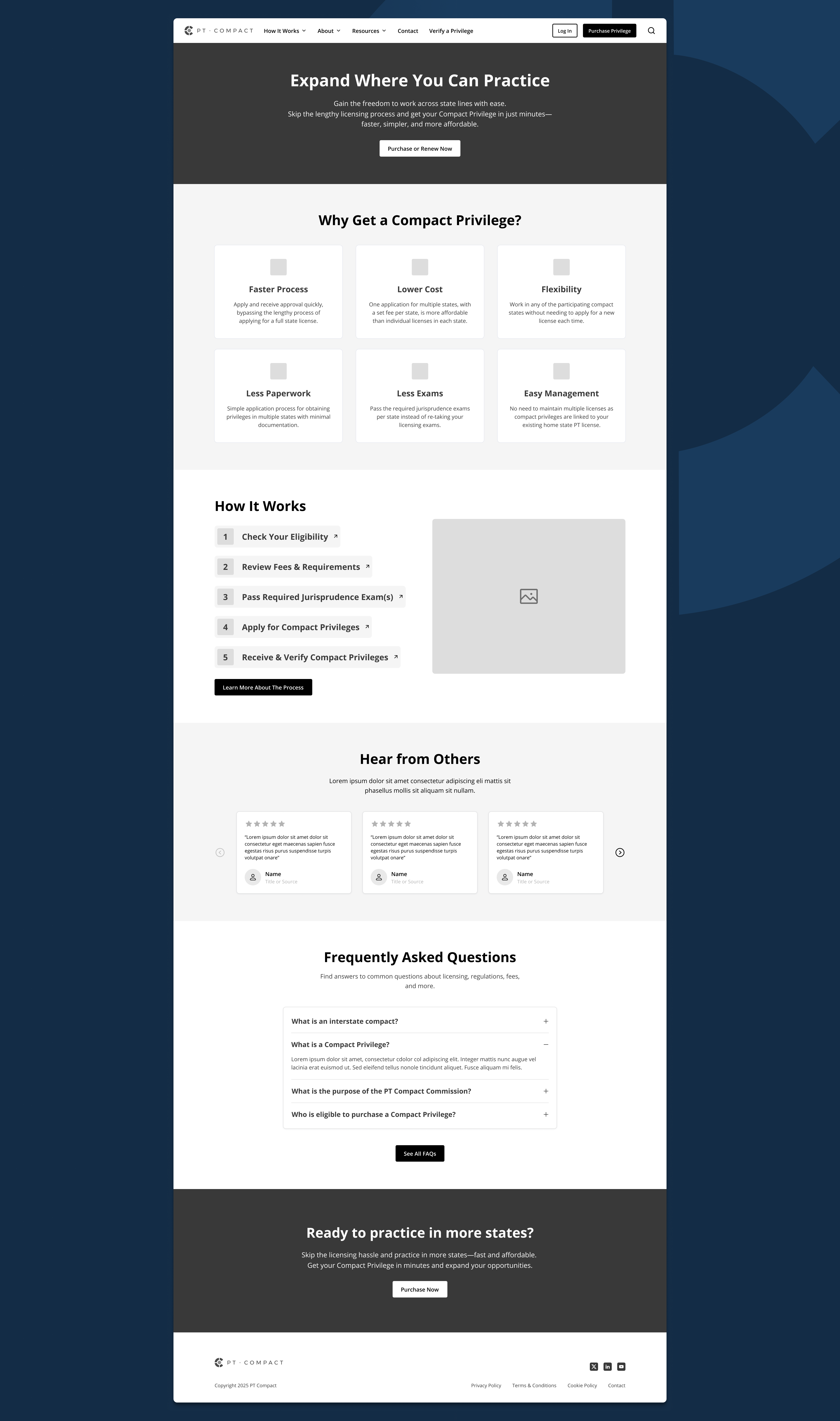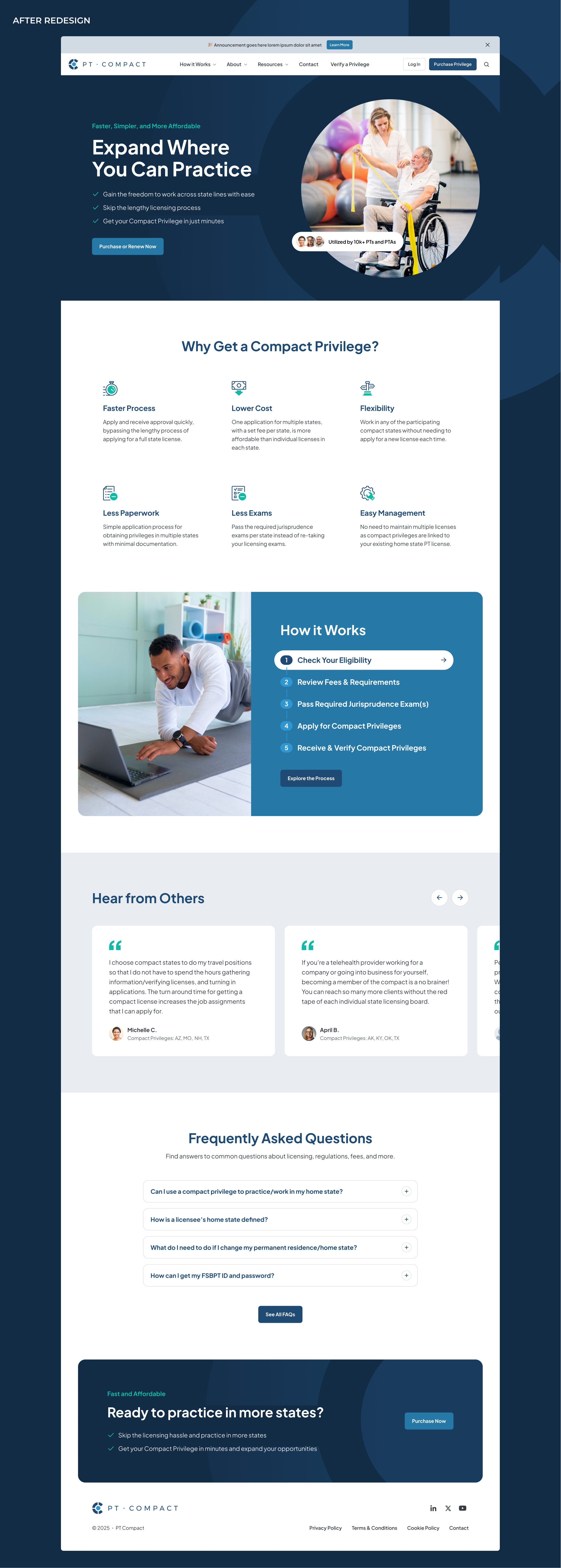 Historically, the PT Compact’s website served more as a regulatory hub than a customer-focused experience. It housed essential governance information (like meeting minutes, board details, and documentation) but lacked clarity, structure, and user-centered design for its growing base of physical therapists seeking Compact privileges.